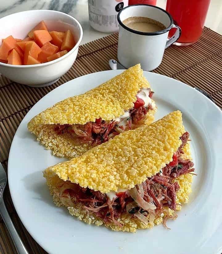 |Recheio: Carne Seca desfiada com Cebola roxa e Tomate