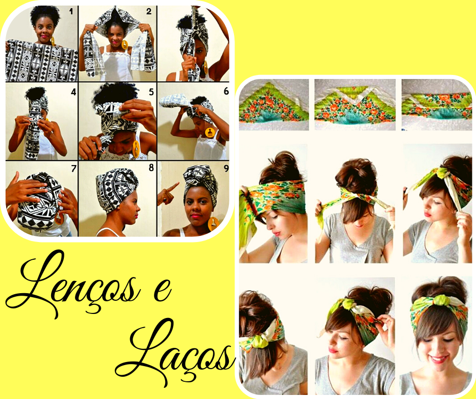 Os lenços nos facilitam muito para fazer um penteado rápido e prático, além de combinar com qualquer tipo de cabelo. Isso para o nosso dia-a-dia cheio de tarefas do cotidiano é o ideal e está vindo muito forte nesta nova tendência de penteados de verão.