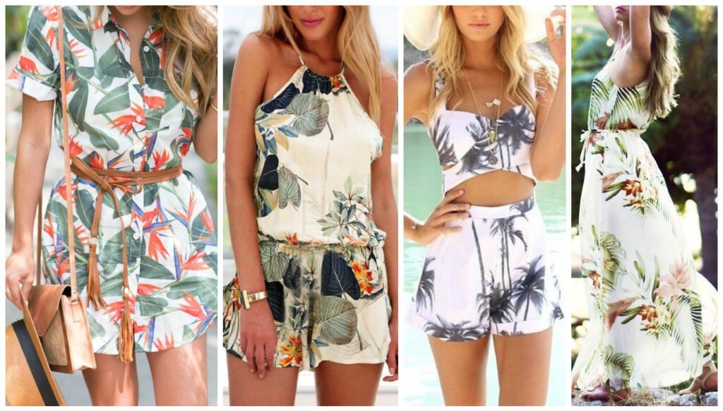 A principal tendência deste verão e substituir as estampas florais por estampas tropicais. As florais sempre voltam a moda nos verões, porém este ano as folhas grandes com cores quentes e desenhos abstratos é o que vai fazer sucesso.
